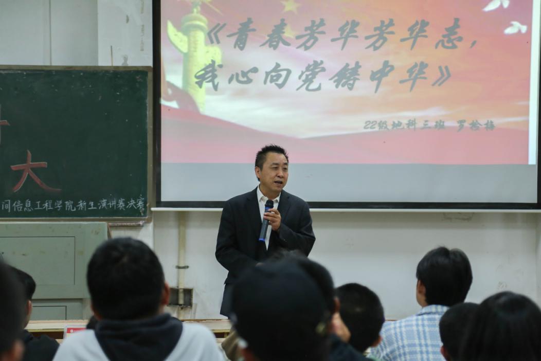 10月21日晚,无码影片 在第五教学楼1-2举办了以“学习二十大,艺心向湖科”为主题的22届新生演讲比赛,院长任伯帜、院党委副书记罗玺、新生辅导员彭志强等一行人出席活动。